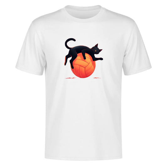 搖擺藝術家,黑貓懶洋洋地躺在橙色排球上,星空T恤