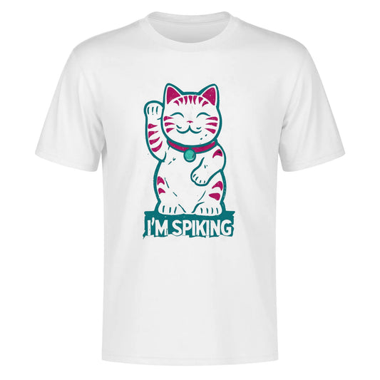 搖擺藝術家,帶有品紅色條紋和青色輪廓的卡通招財貓排球T恤